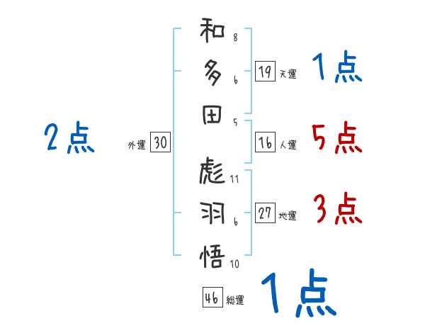 人運![]() | 和多田彪羽悟さんの人運は16画の5つ星!人望が厚く大きく発展する。逆転成功が見える。 性格や才能などを表す2番目に重要な運勢です。人間関係や協調性、社会的な成功に影響します。主に20歳から50歳ぐらいまでの中年期の運勢を表します。 |