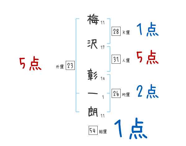 梅沢彰一朗さんの画数の鑑定結果