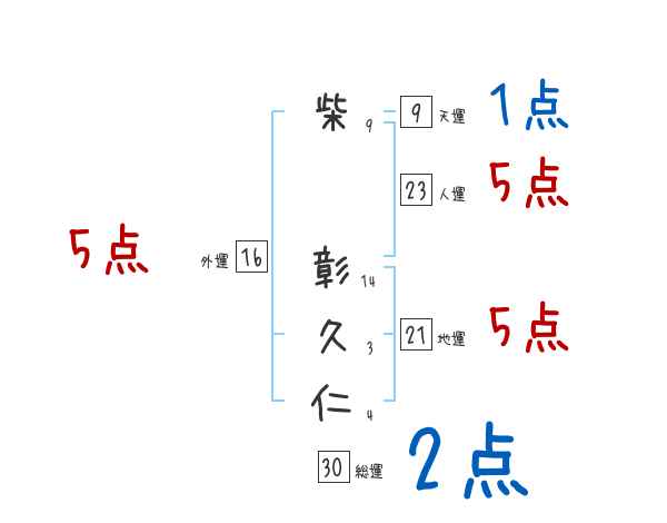 外運![]() | 柴彰久仁さんの外運は16画の5つ星!人望が厚く大きく発展する。逆転成功が見える。 生活面を象徴する運勢です。外部から受ける影響力を表し、結婚運、家庭運や職場、環境への順応性を表します。 |