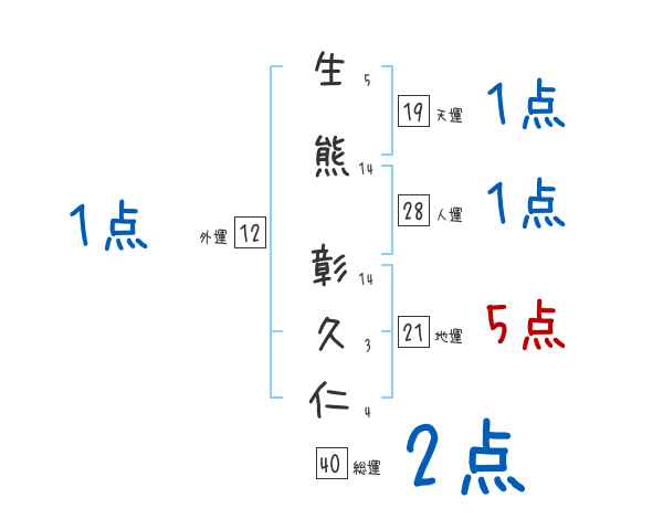 生熊彰久仁さんの画数の鑑定結果