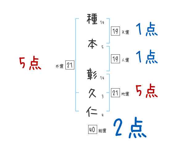 外運![]() | 種本彰久仁さんの外運は21画の5つ星!統率力がある。独立し成功する。名誉を手に入れる。 生活面を象徴する運勢です。外部から受ける影響力を表し、結婚運、家庭運や職場、環境への順応性を表します。 |