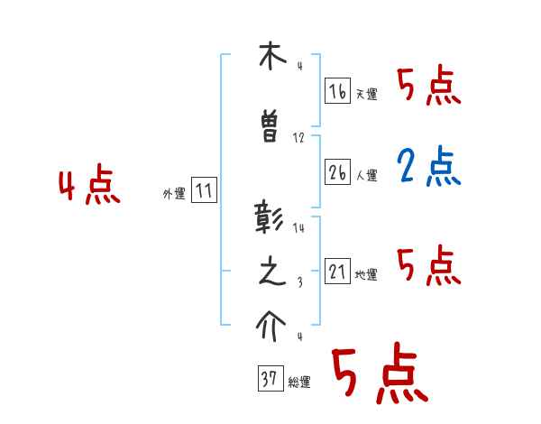 木曽彰之介さんの画数の鑑定結果