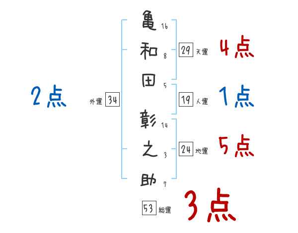 亀和田彰之助さんの画数の鑑定結果