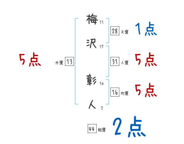梅沢彰人さんの画数の鑑定結果