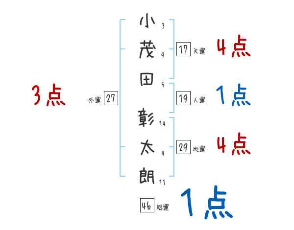 天運![]() | 小茂田彰太朗さんの天運は17画の4つ星!積極的な行動力。地位を気づき財産を手に入れる。純粋な心と直感力。 家系が持つ宿命的な運勢を表します。祖先から受け継いだ苗字ですので自分の力が及びません。家柄を象徴します。 |