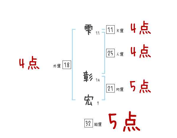 雫彰宏さんの画数の鑑定結果