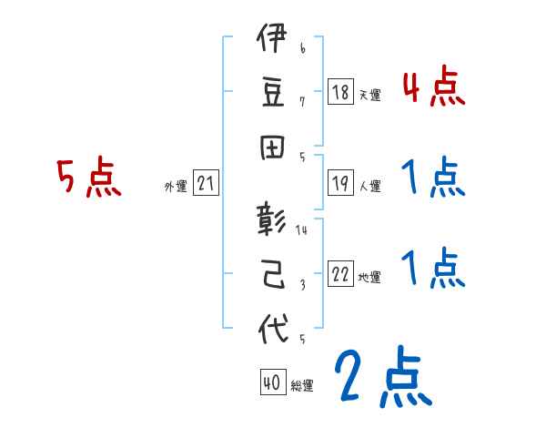外運![]() | 伊豆田彰己代さんの外運は21画の5つ星!統率力がある。独立し成功する。名誉を手に入れる。 生活面を象徴する運勢です。外部から受ける影響力を表し、結婚運、家庭運や職場、環境への順応性を表します。 |