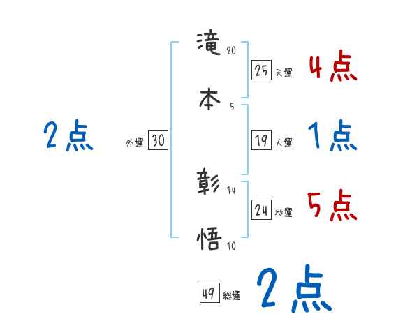 滝本彰悟さんの画数の鑑定結果
