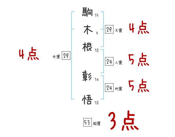 駒木根彰悟さんの画数の鑑定結果
