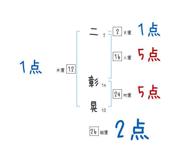 二彰晃さんの画数の鑑定結果
