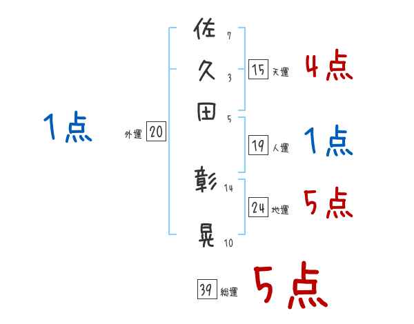天運![]() | 佐久田彰晃さんの天運は15画の4つ星!人徳があり出世する。順調に物事を進め円満な人生。 家系が持つ宿命的な運勢を表します。祖先から受け継いだ苗字ですので自分の力が及びません。家柄を象徴します。 |