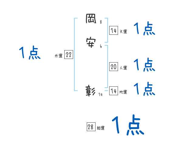 天運![]() | 岡安彰さんの天運は14画の1つ星!人に対して優しいがストレスを溜め込みがち。人間関係のトラブルを避けるよう気をつけましょう。 家系が持つ宿命的な運勢を表します。祖先から受け継いだ苗字ですので自分の力が及びません。家柄を象徴します。 |
