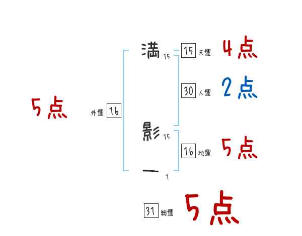 満影一さんの画数の鑑定結果