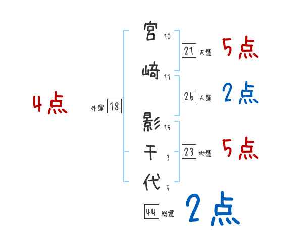 宮﨑影千代さんの画数の鑑定結果