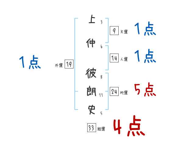 外運![]() | 上仲彼朗史さんの外運は19画の1つ星!優れた才能を持ちますが、協調性が足りないことも。周りの人と協力する事を意識しましょう。 生活面を象徴する運勢です。外部から受ける影響力を表し、結婚運、家庭運や職場、環境への順応性を表します。 |