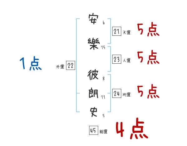 天運![]() | 安樂彼朗史さんの天運は21画の5つ星!統率力がある。独立し成功する。名誉を手に入れる。 家系が持つ宿命的な運勢を表します。祖先から受け継いだ苗字ですので自分の力が及びません。家柄を象徴します。 |