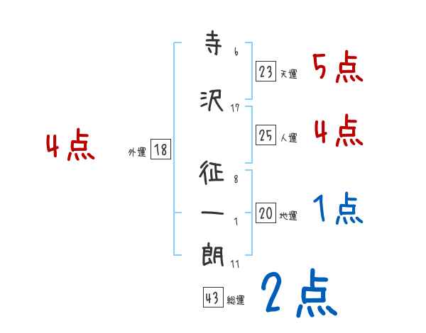 寺沢征一朗さんの画数の鑑定結果