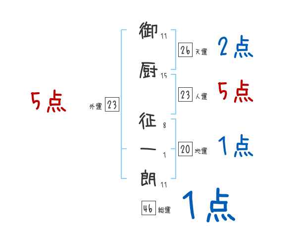 御厨征一朗さんの画数の鑑定結果