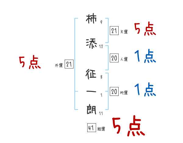 柿添征一朗さんの画数の鑑定結果