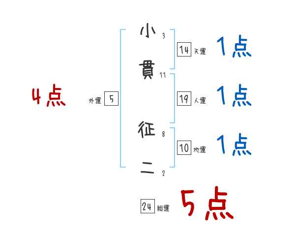 小貫征二さんの画数の鑑定結果