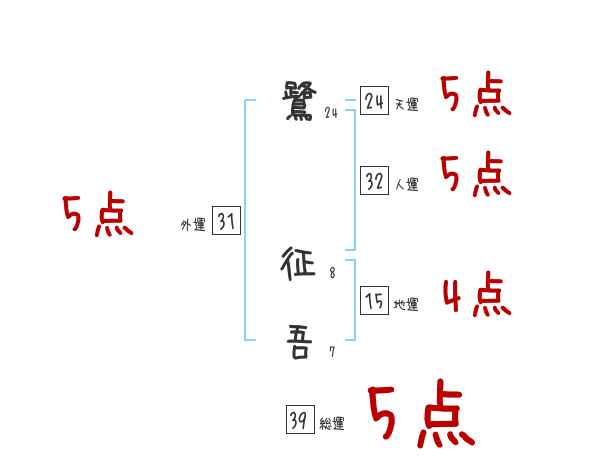 鷺征吾さんの画数の鑑定結果