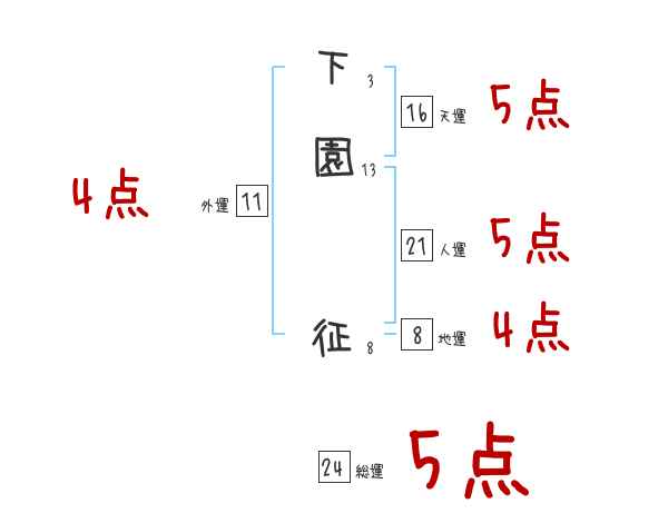 下園征さんの画数の鑑定結果