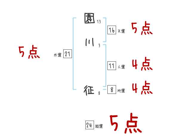 園川征さんの画数の鑑定結果