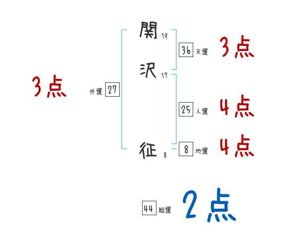 関沢征さんの画数の鑑定結果