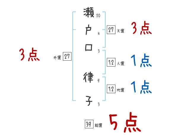 瀬戸口律子さんの画数の鑑定結果