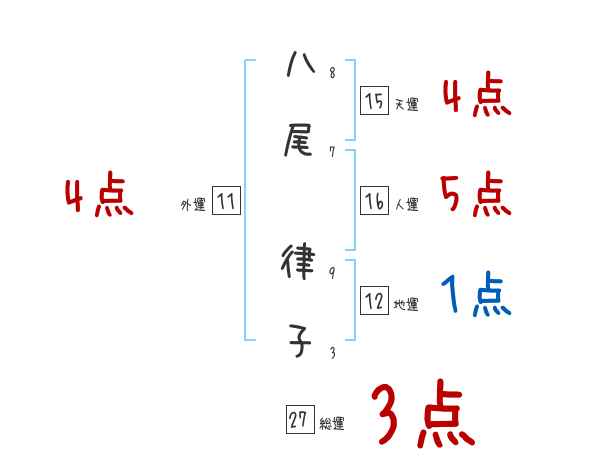 八尾律子さんの画数の鑑定結果