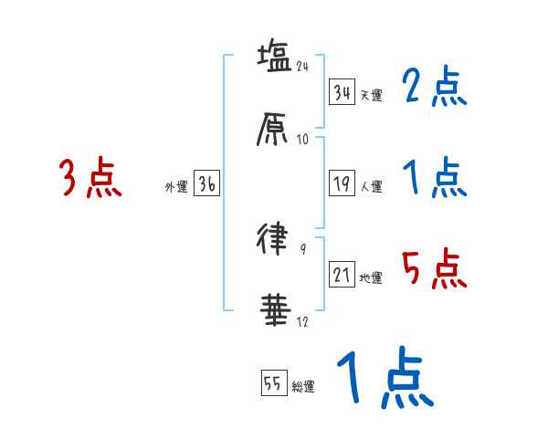 塩原律華さんの画数の鑑定結果