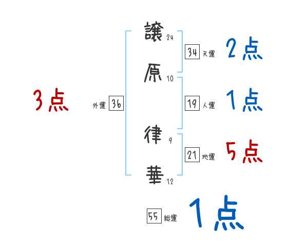 譲原律華さんの画数の鑑定結果