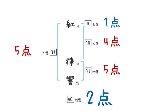 紅律響さんの画数の鑑定結果