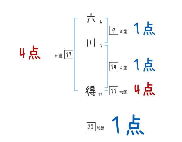 六川得さんの画数の鑑定結果
