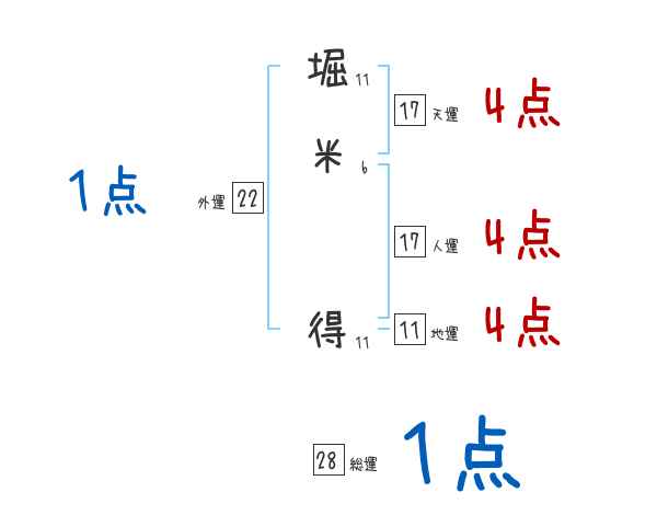 堀米得さんの画数の鑑定結果