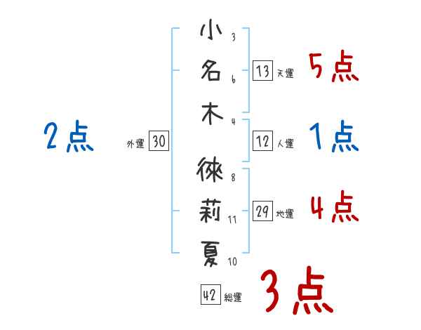 小名木徠莉夏さんの画数の鑑定結果