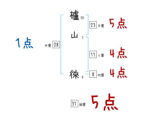 櫨山徠さんの画数の鑑定結果