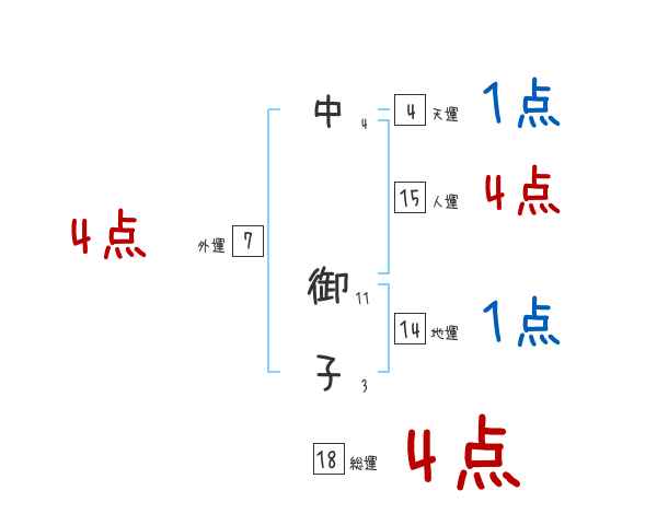 中御子さんの画数の鑑定結果