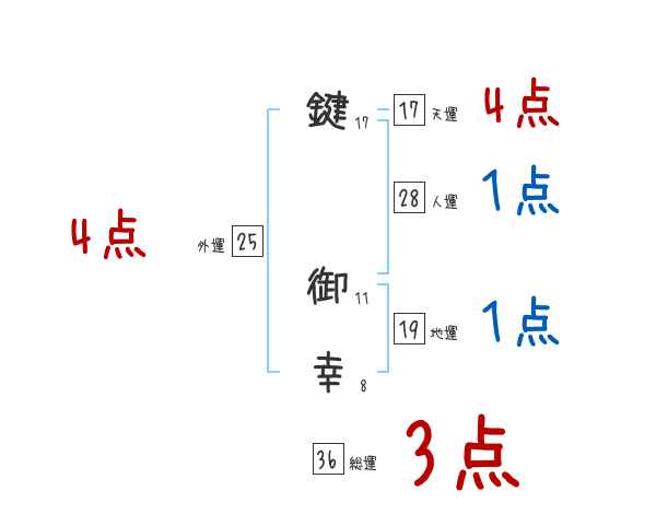 鍵御幸さんの画数の鑑定結果