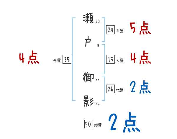 天運![]() | 瀬戸御影さんの天運は24画の5つ星!家庭運が良く順調な人生。金運にも恵まれる。 家系が持つ宿命的な運勢を表します。祖先から受け継いだ苗字ですので自分の力が及びません。家柄を象徴します。 |