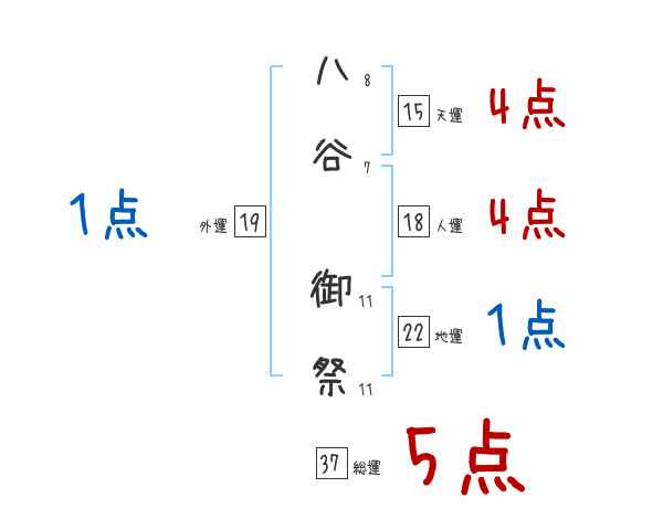 八谷御祭さんの画数の鑑定結果