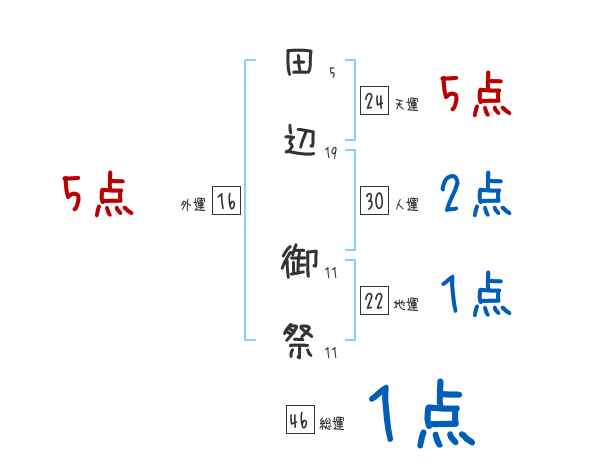 田辺御祭さんの画数の鑑定結果