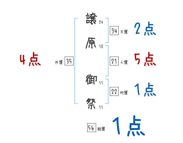 譲原御祭さんの画数の鑑定結果