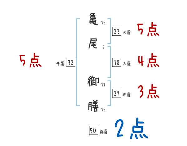 亀尾御膳さんの画数の鑑定結果