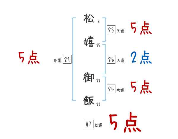 松嬉御飯さんの画数の鑑定結果