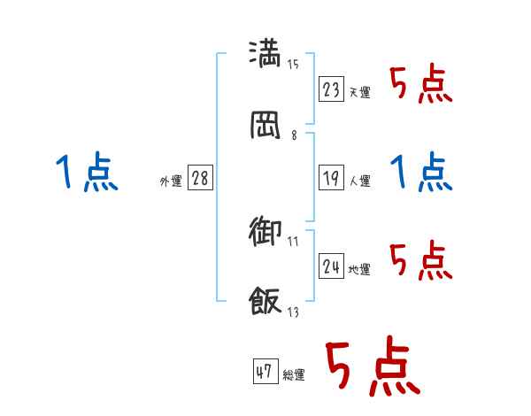 満岡御飯さんの画数の鑑定結果
