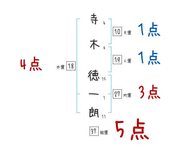 寺木徳一朗さんの画数の鑑定結果