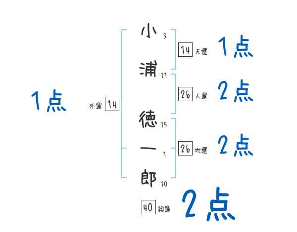 小浦徳一郎さんの画数の鑑定結果