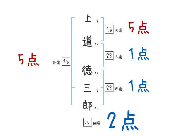 上道徳三郎さんの画数の鑑定結果
