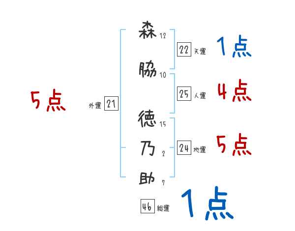 外運![]() | 森脇徳乃助さんの外運は21画の5つ星!統率力がある。独立し成功する。名誉を手に入れる。 生活面を象徴する運勢です。外部から受ける影響力を表し、結婚運、家庭運や職場、環境への順応性を表します。 |